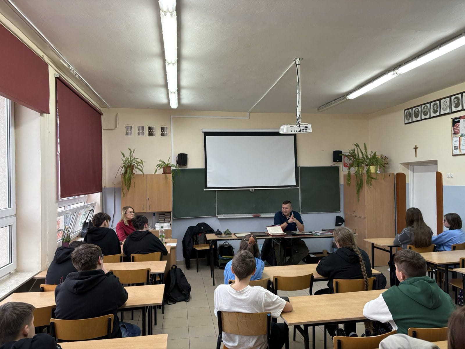 Celem zajęć było rozbudzenie w młodzieży zainteresowania historią Polski oraz regionalnym dziedzictwem. Prowadzący zachęcał uczestników do interaktywnego zgłębiania tradycji i poznawania dziejów ojczyzny w przystępny sposób. Podczas prelekcji uczniowie mieli okazję zapoznać się z unikalnymi materiałami, przekonując się, że historia to nie tylko suche daty i fakty, lecz także fascynujące opowieści o ludziach, kulturze i wydarzeniach, które ukształtowały naszą tożsamość.