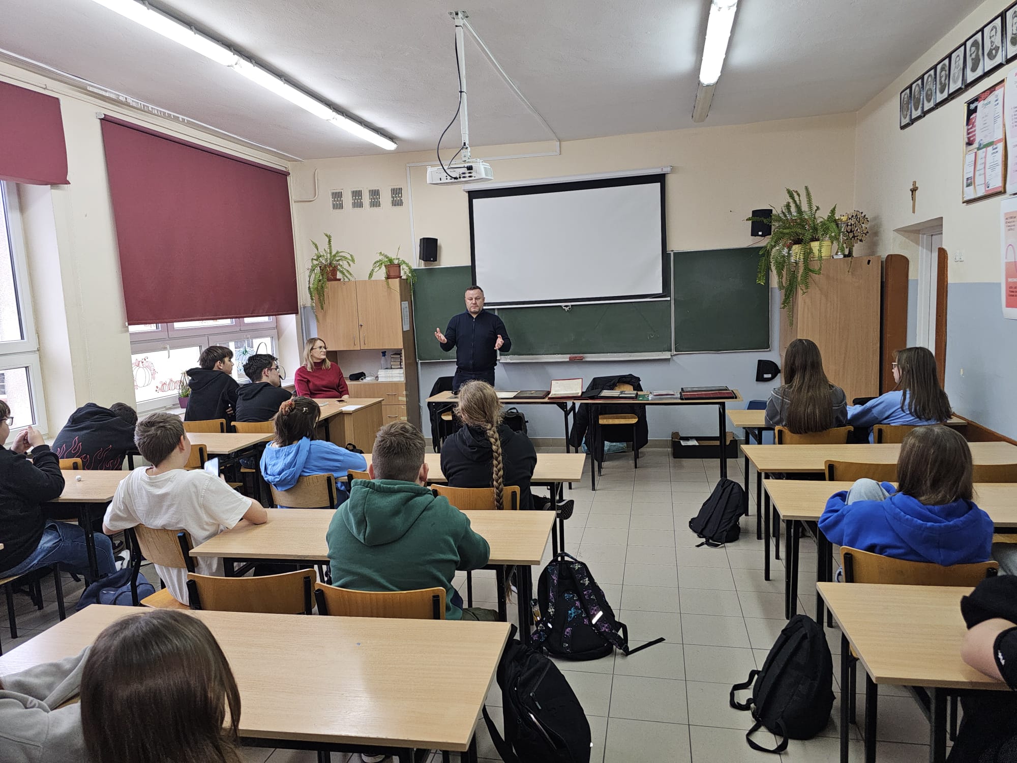 Celem zajęć było rozbudzenie w młodzieży zainteresowania historią Polski oraz regionalnym dziedzictwem. Prowadzący zachęcał uczestników do interaktywnego zgłębiania tradycji i poznawania dziejów ojczyzny w przystępny sposób. Podczas prelekcji uczniowie mieli okazję zapoznać się z unikalnymi materiałami, przekonując się, że historia to nie tylko suche daty i fakty, lecz także fascynujące opowieści o ludziach, kulturze i wydarzeniach, które ukształtowały naszą tożsamość.