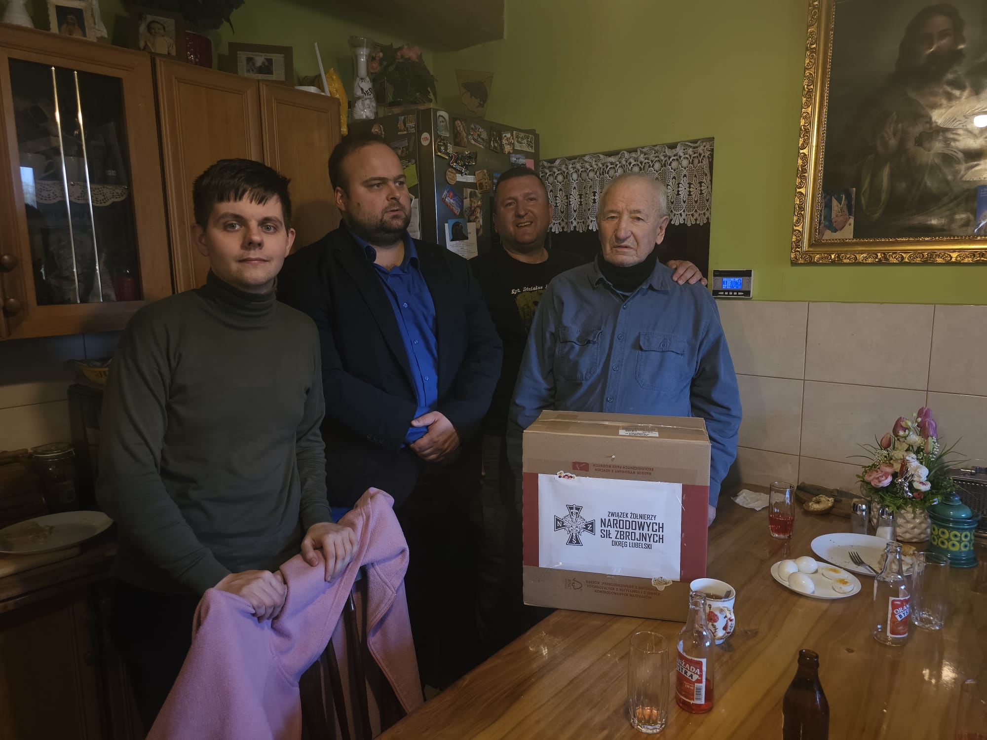 W okresie świątecznym prezes Wojciech Rowiński z wolontariuszami Fundacji, odwiedzili kombatantów na Lubelszczyźnie. Paczka to w zasadzie pretekst do tych odwiedzin. Najważniejsze są kontakt i pamięć o ich postawie w okresie ciężkiej próby okupacji niemieckiej i zniewoleniu komunistycznemu. Wspólnie z młodzieżą z województwa lubelskiego  wypisaliśmy kartki z życzeniami świątecznym wyrażając weteranom podziękowanie za niezłomną postawę w okresie ich konspiracji. Działanie takie jest przykładem zaangażowania w podtrzymywanie i upowszechnianie tradycji narodowej, pielęgnowanie polskości oraz rozwój świadomości obywatelskiej i kulturowej. To nie tylko piękny gest wobec weteranów, ale również okazja do budowania więzi między pokoleniami. Dzięki zaangażowaniu młodzieży szkolnej, wolontariuszy oraz organizacji patriotycznych, kombatanci mogą poczuć, że ich historia i poświęcenie są doceniane przez młodsze pokolenia. Zachęcamy do wsparcia naszych akcji.